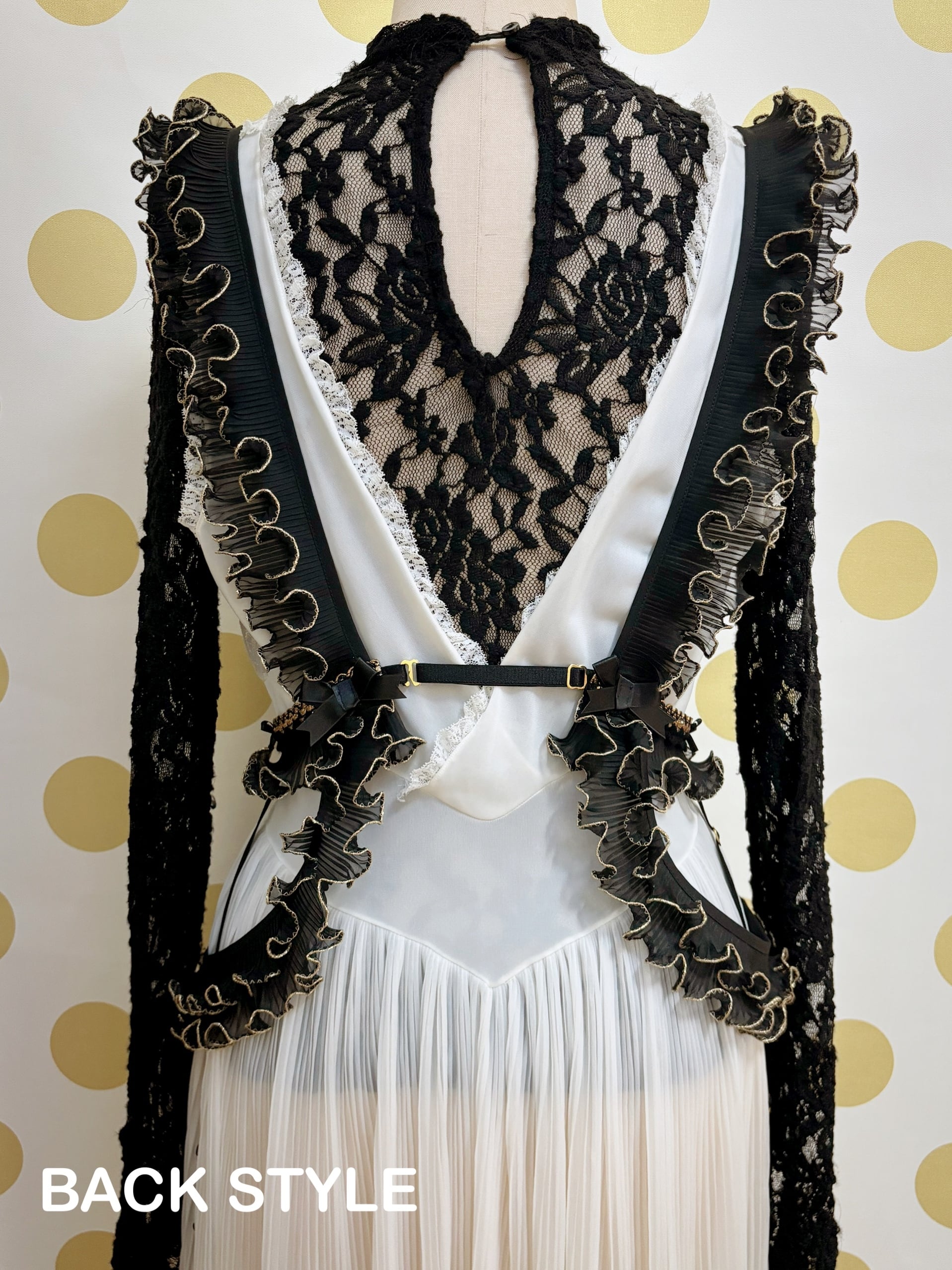 プリーツのフリルを贅沢に使用したドレッシーなガーター付ハーネス。