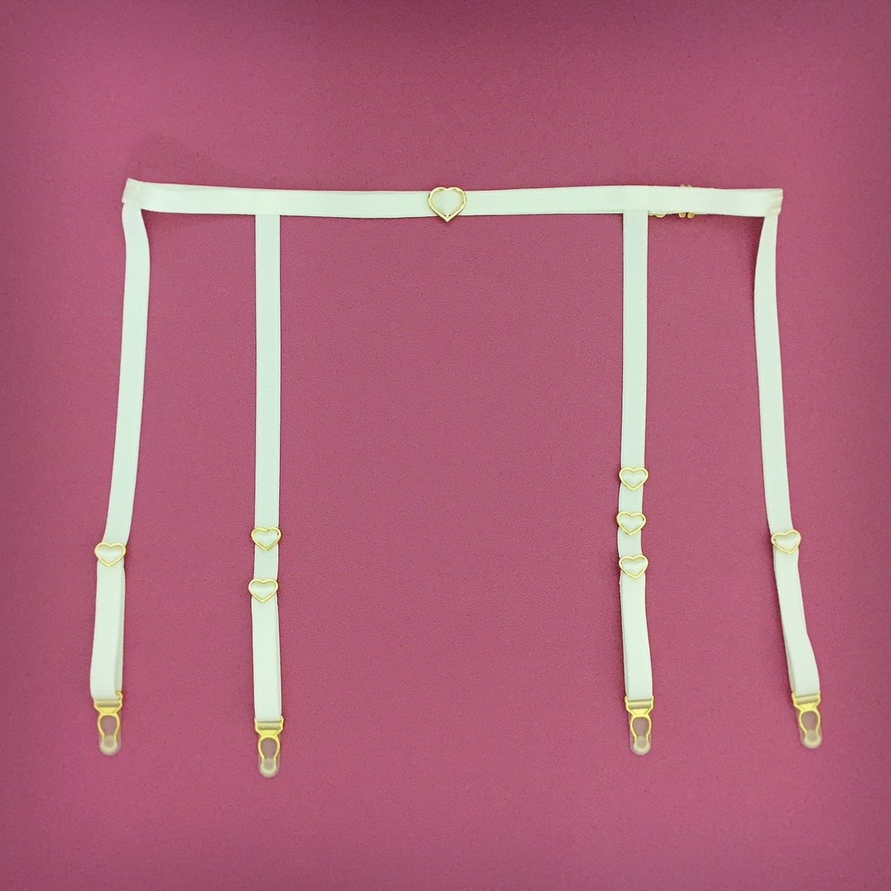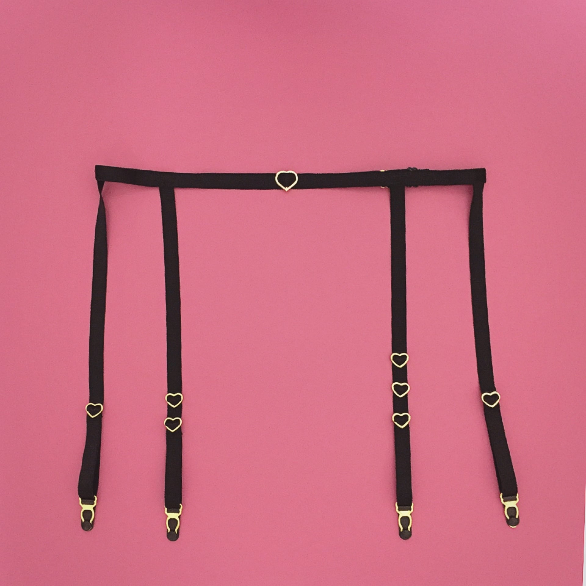アシンメトリーに施されたハートが可愛らしく、フェティッシュなガーターベルト。