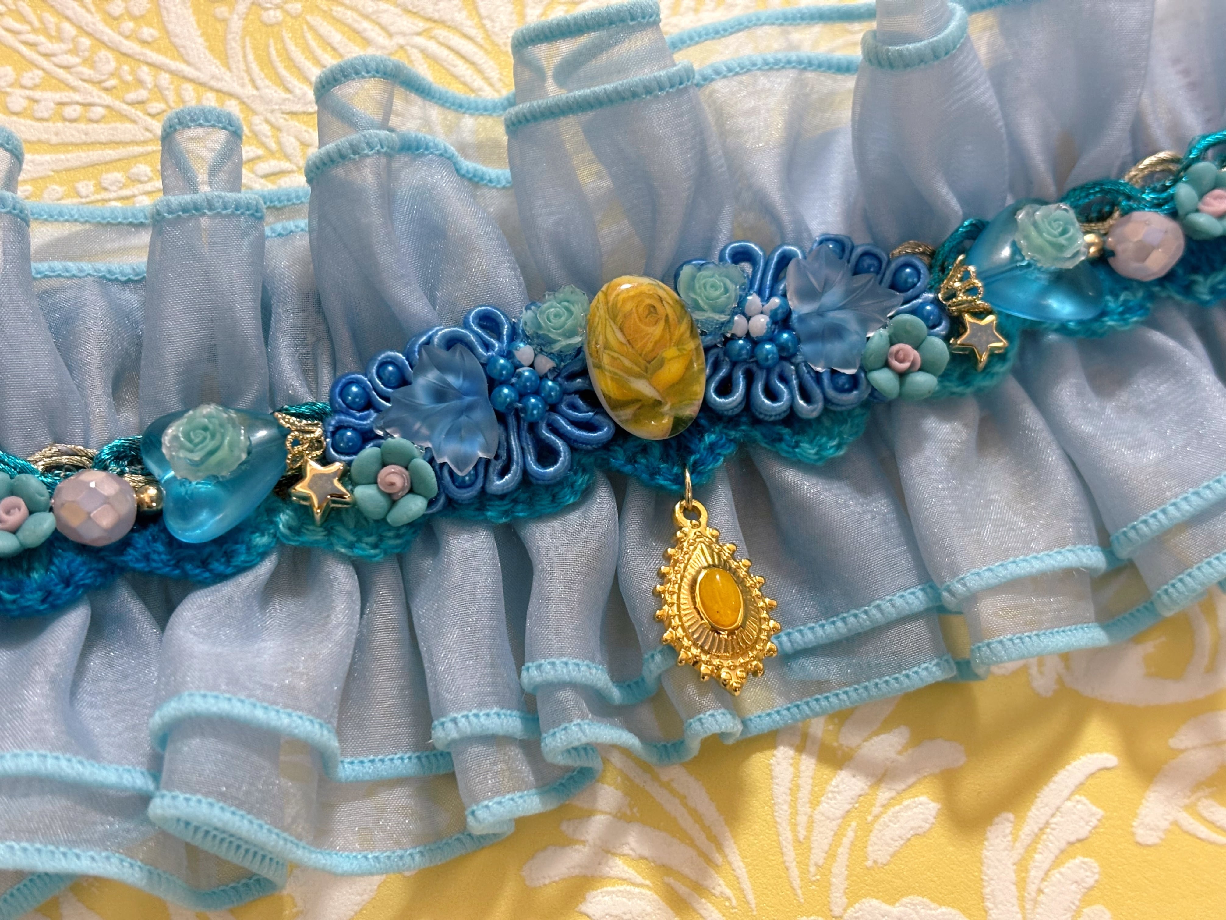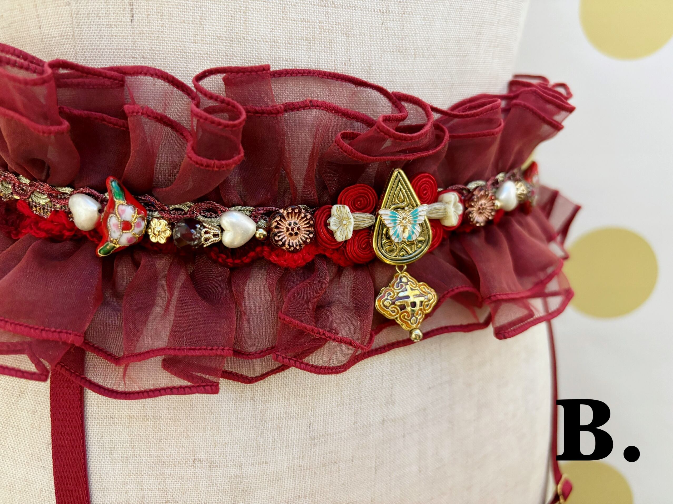 ボリューミーで波のようなフリルに、異国の宝石のような装飾が腰回りを華やかに飾ってくれます。