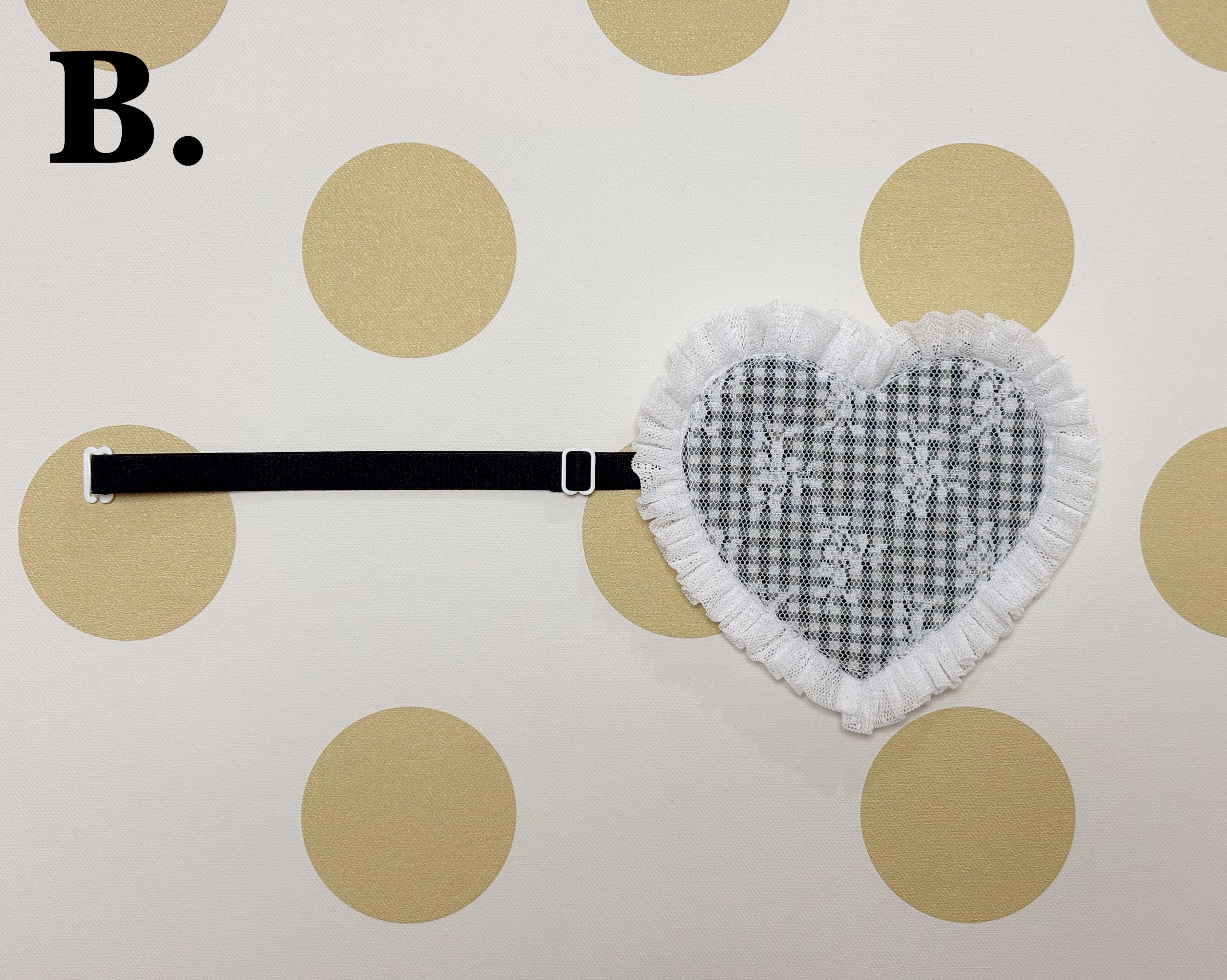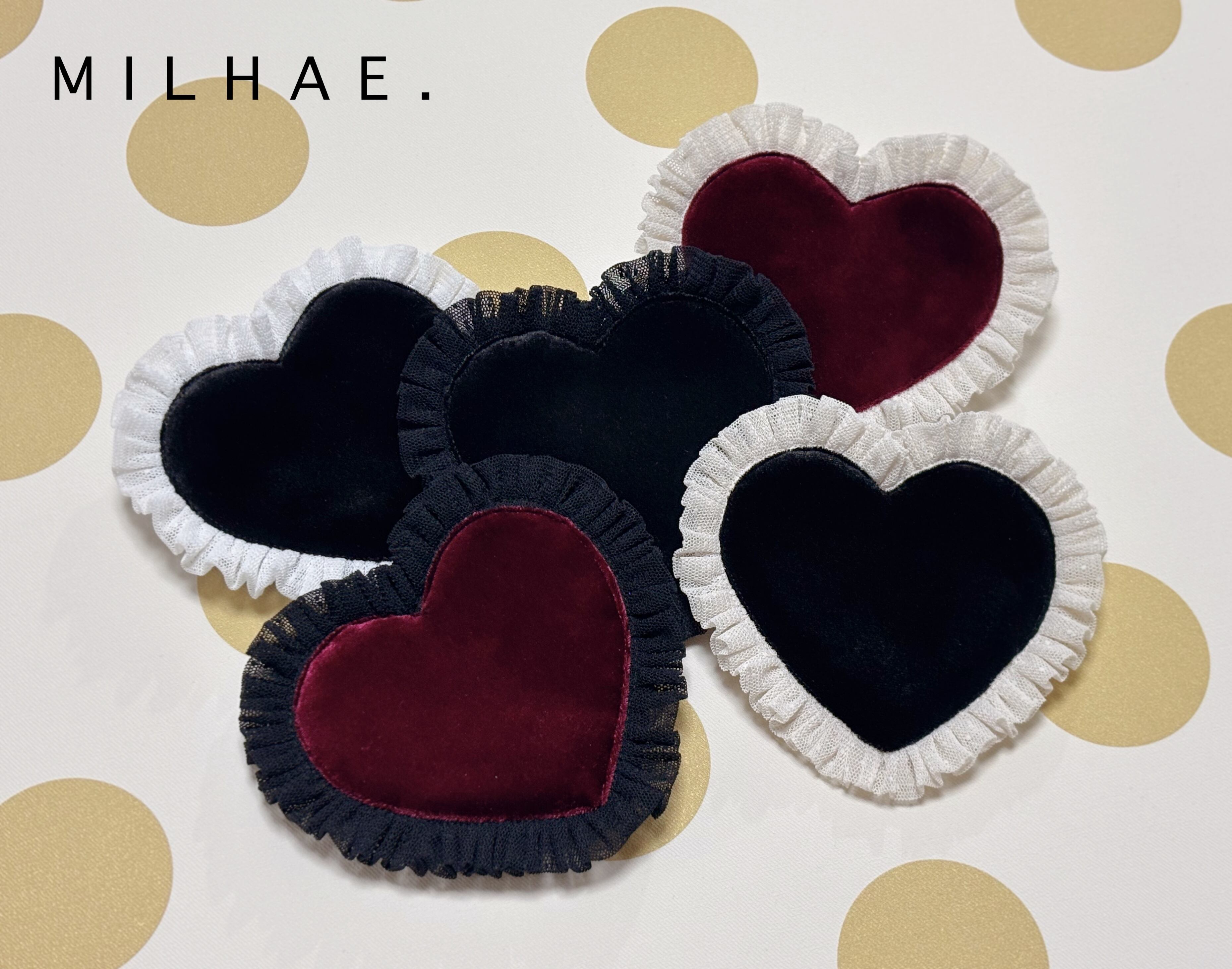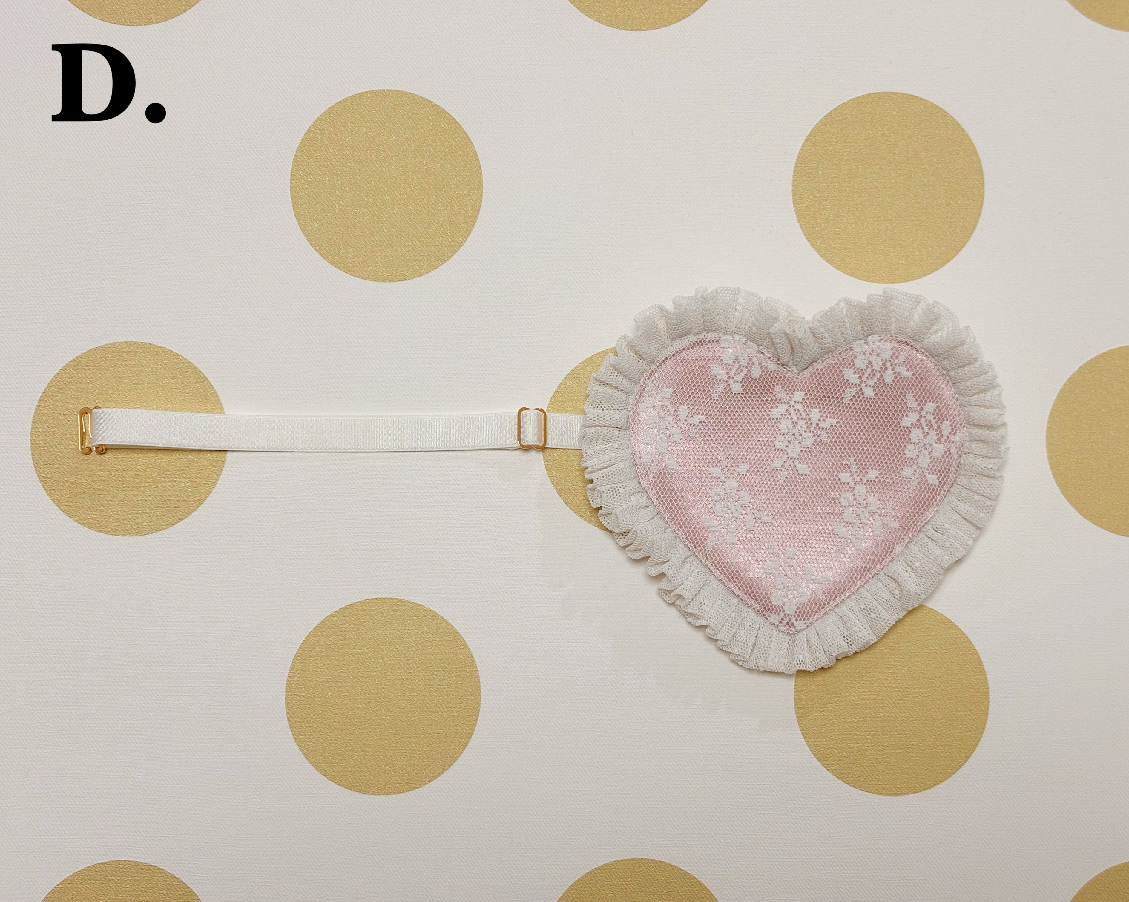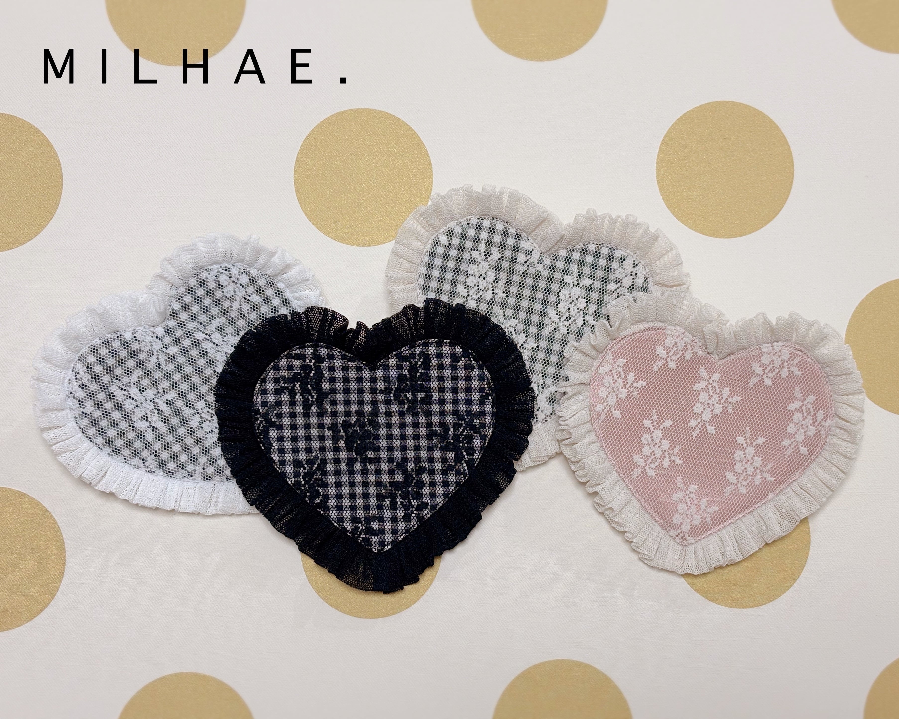 大ぶりなハートに、透け感が可愛いドットチュールのフリルをあしらいました。