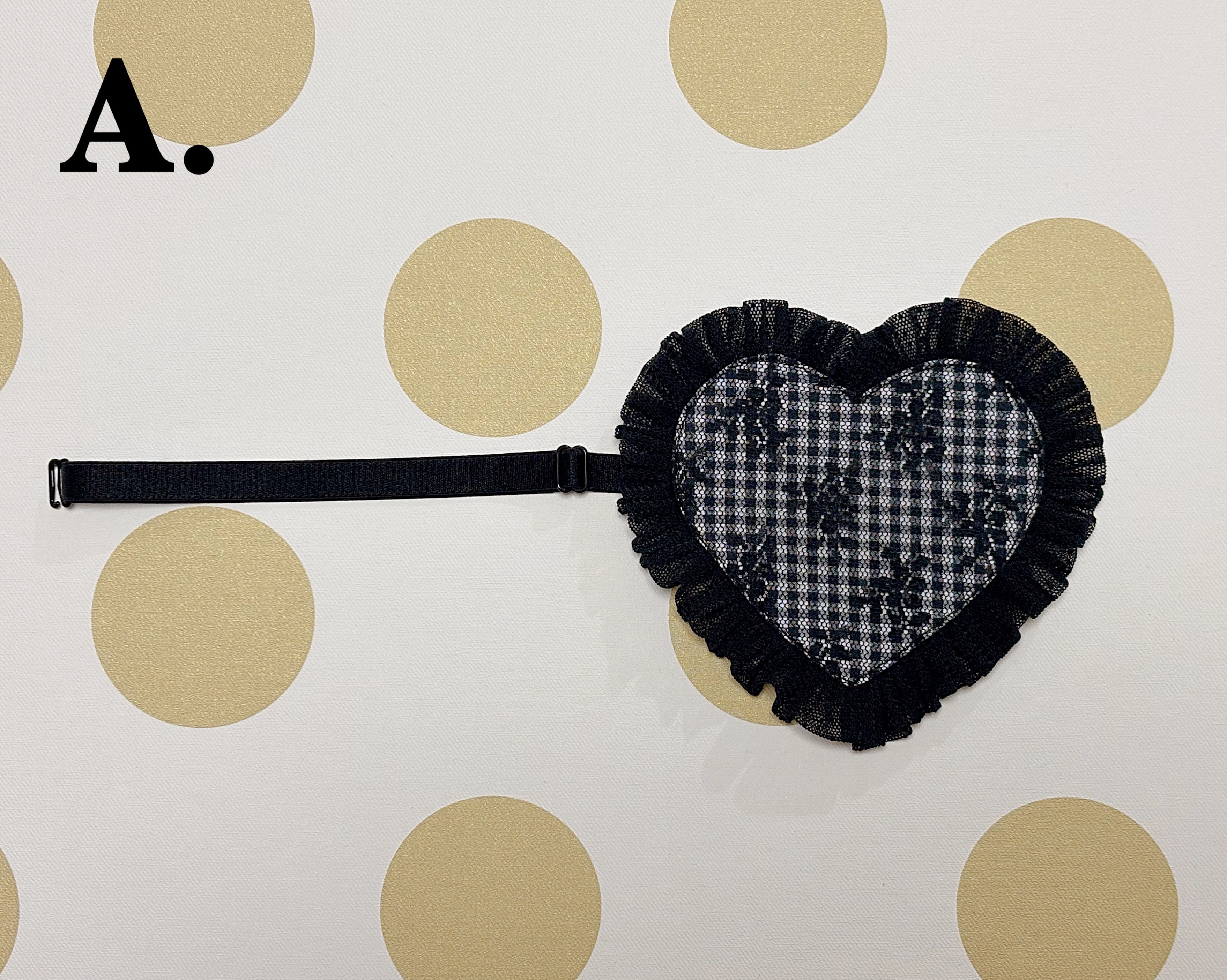 装飾のためにうまれた、キッチュでラブリーなハートパッチのガーターバンドです。