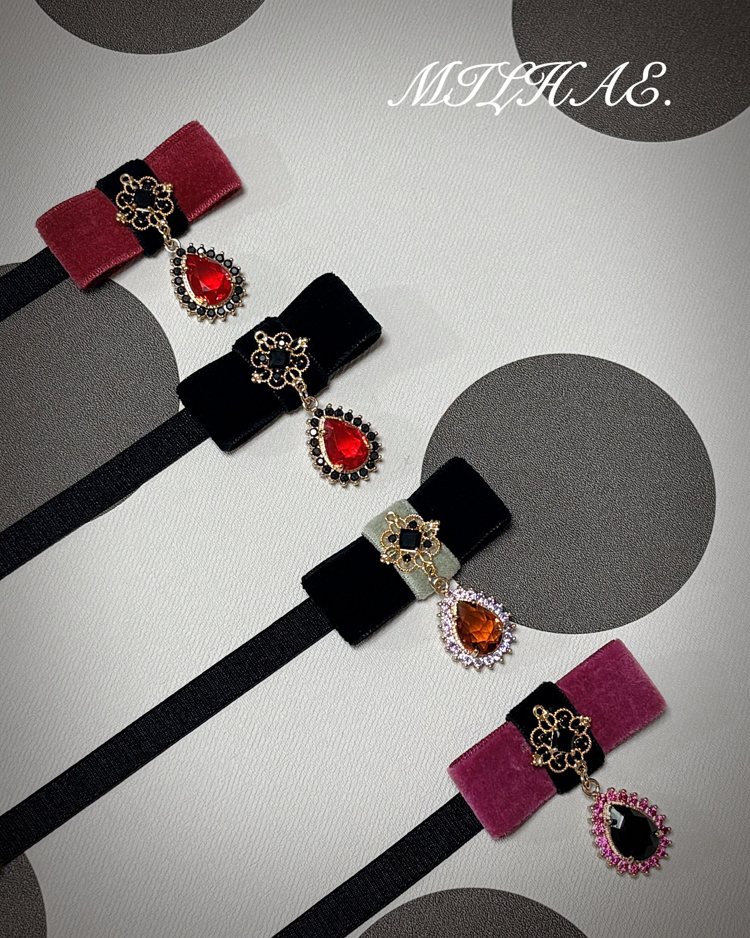 上質なコットンベルベットのリボンに、煌めくオーナメント。