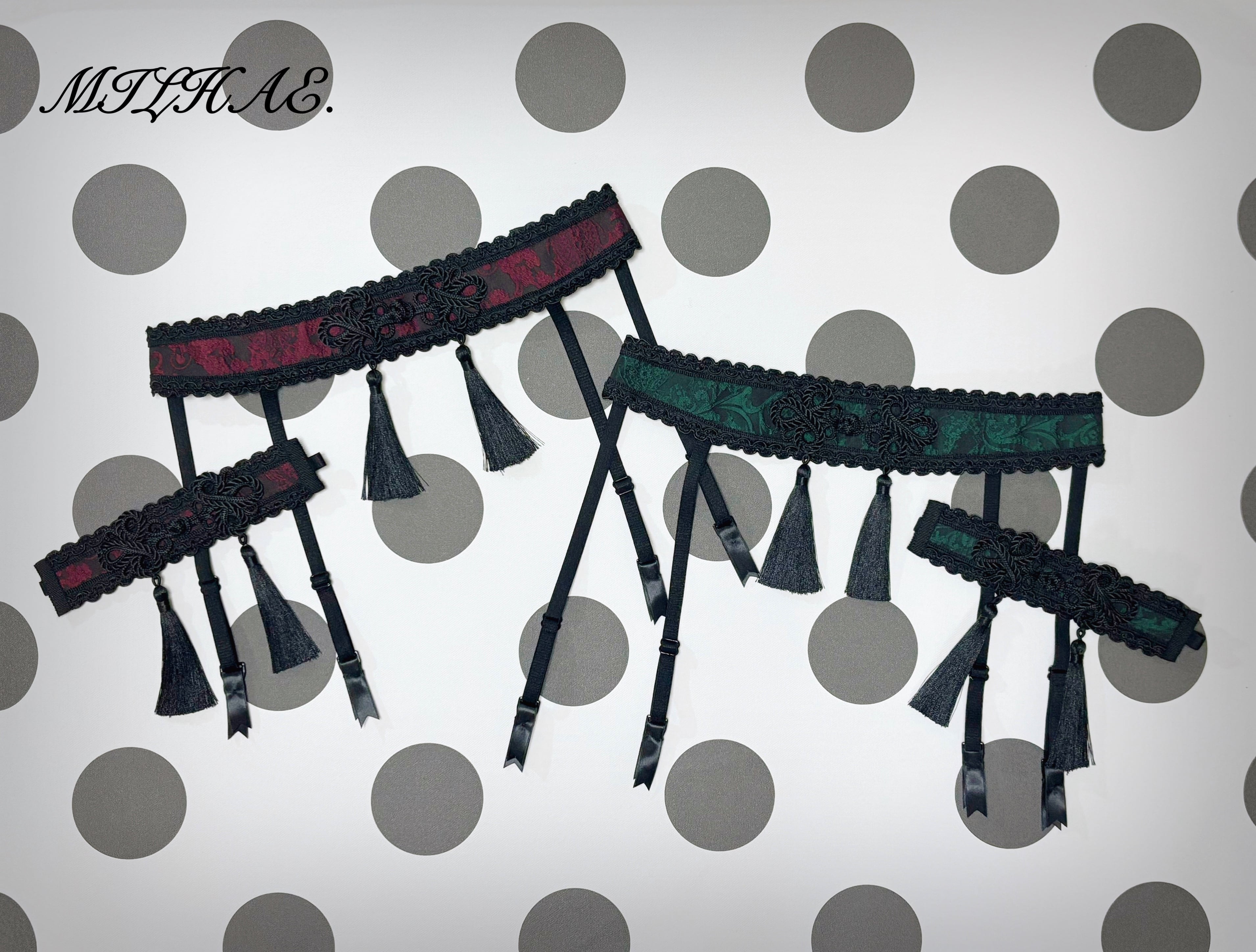 【レッド×ブラック】ダブルタッセル・ガーターバンド