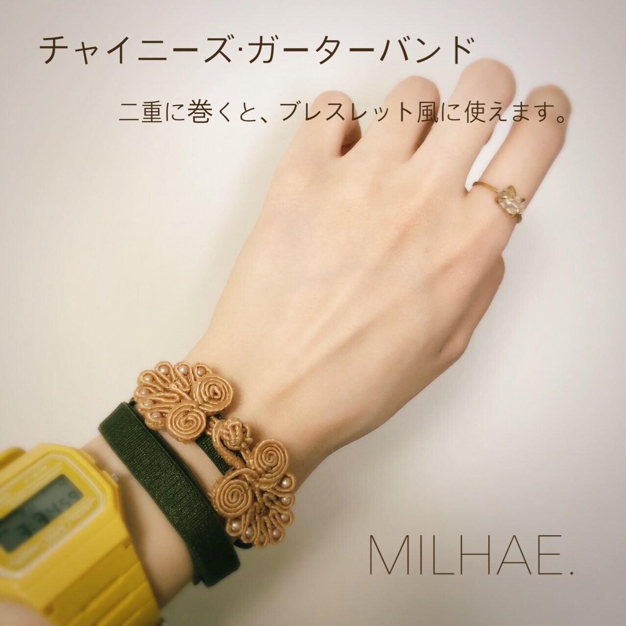 チャイナボタンが脚を飾ってくれる、ユニークなガーターバンド。