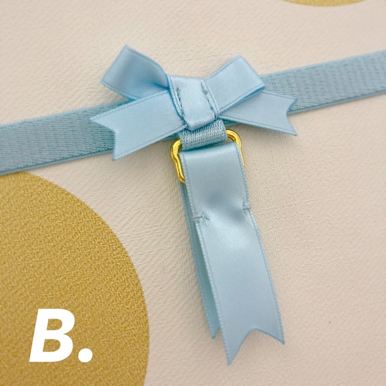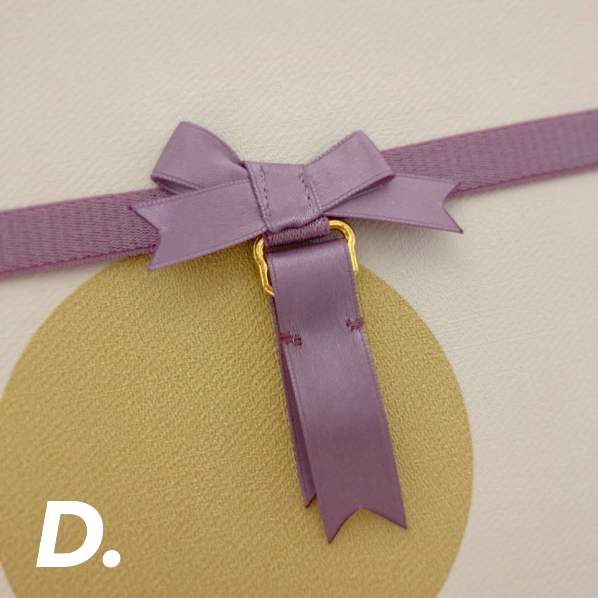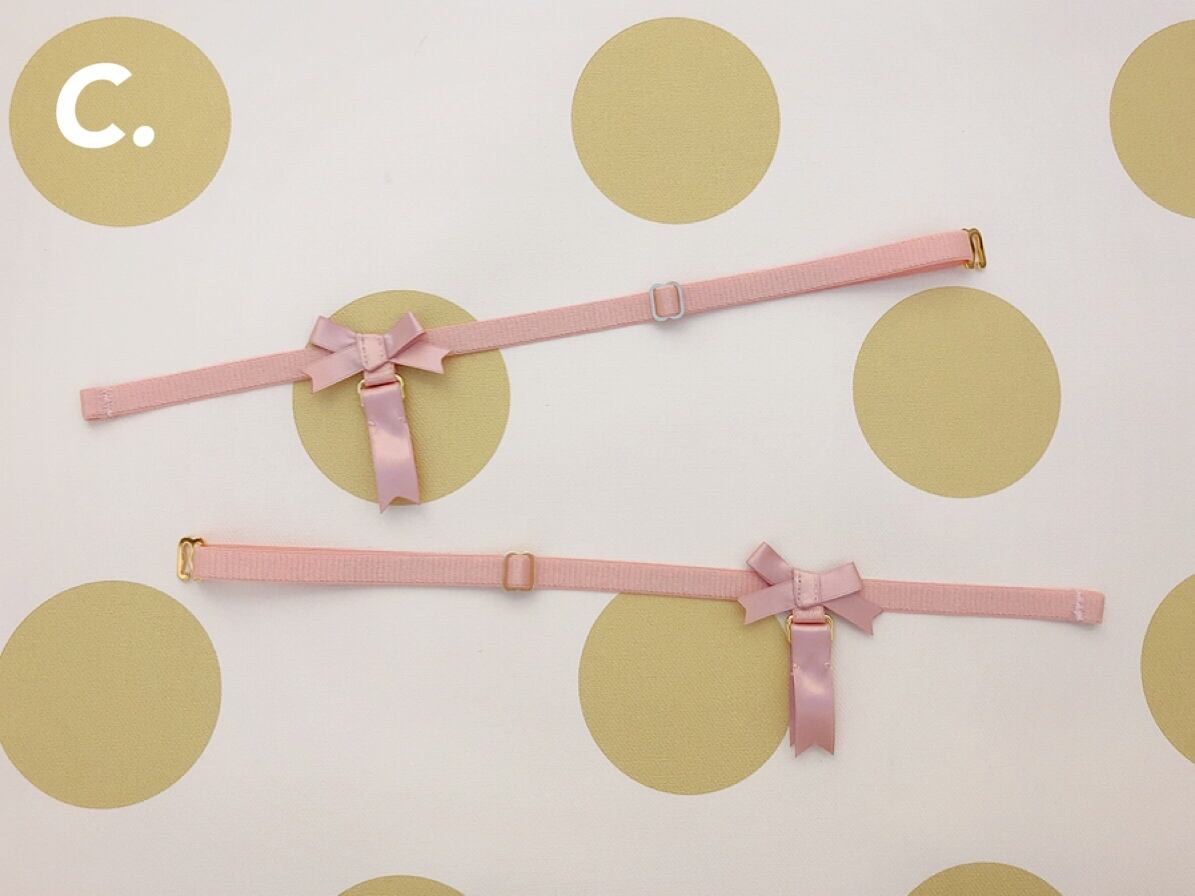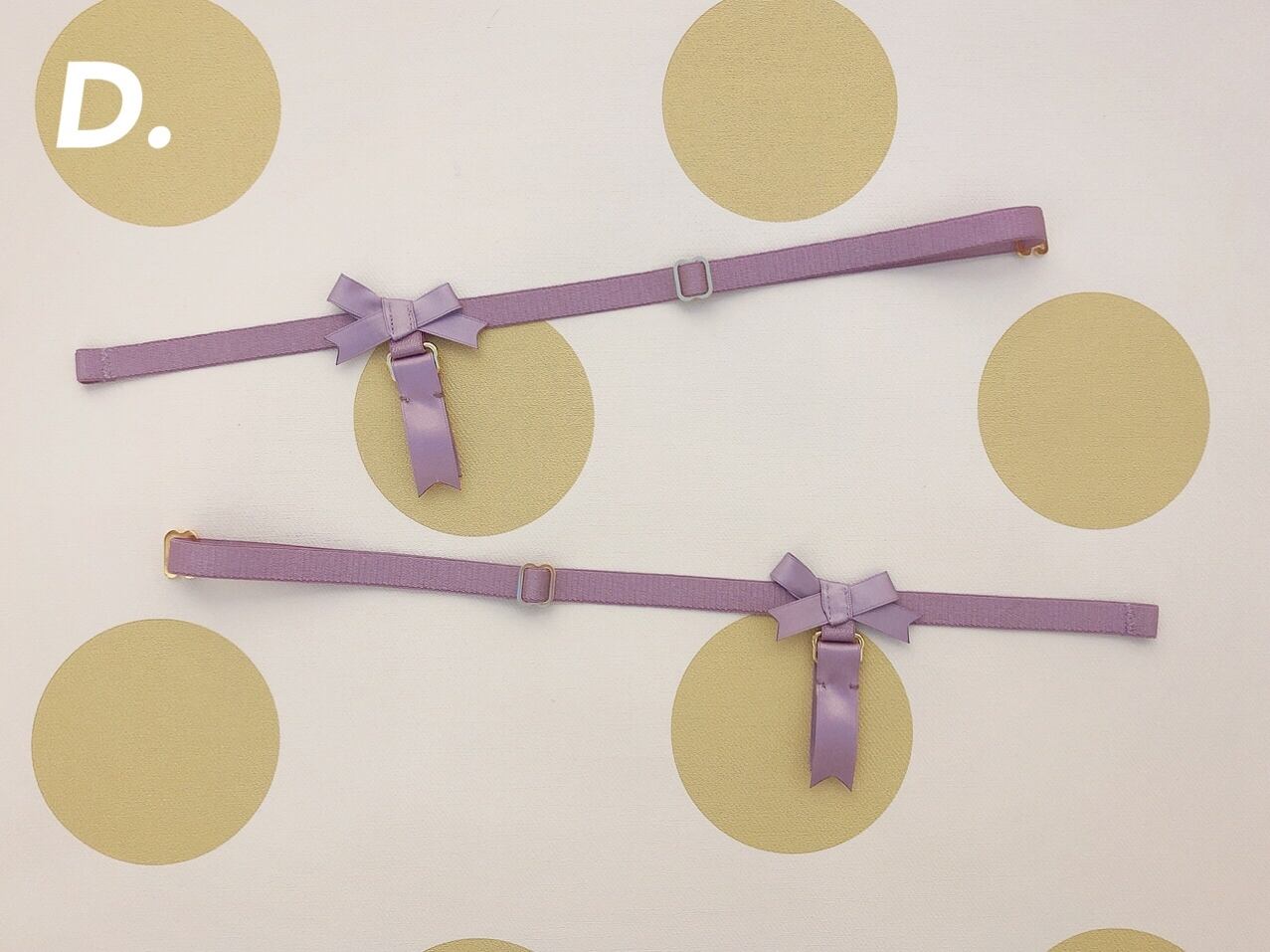 “シングルホルダー2点セット”のご注文ページです。画像のアルファベットを参考に、お好きなカラーをお選び下さい(お揃いのガーターベルト等は別売りです。)