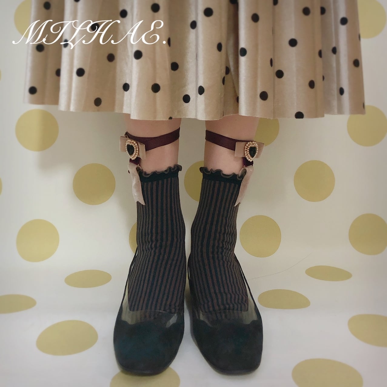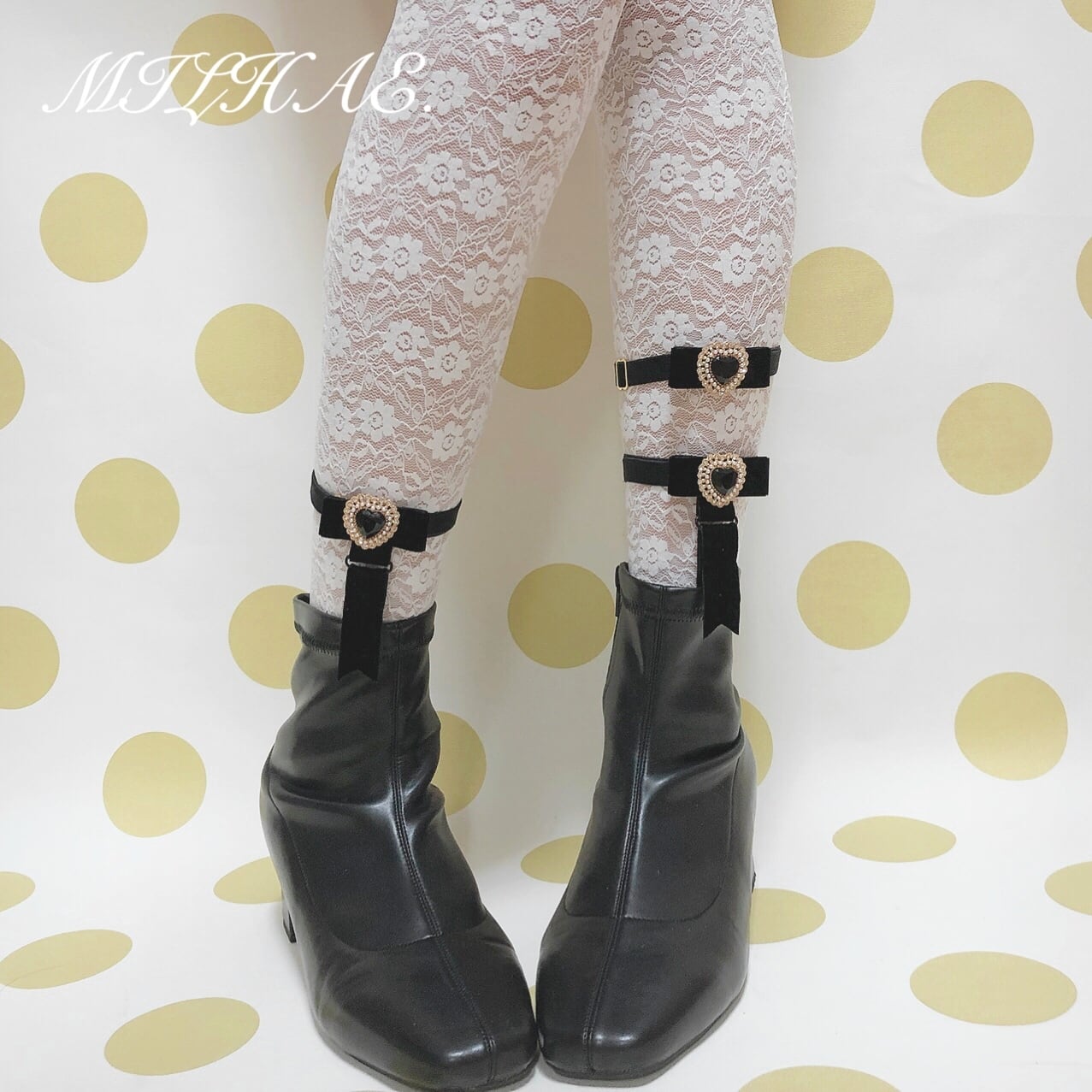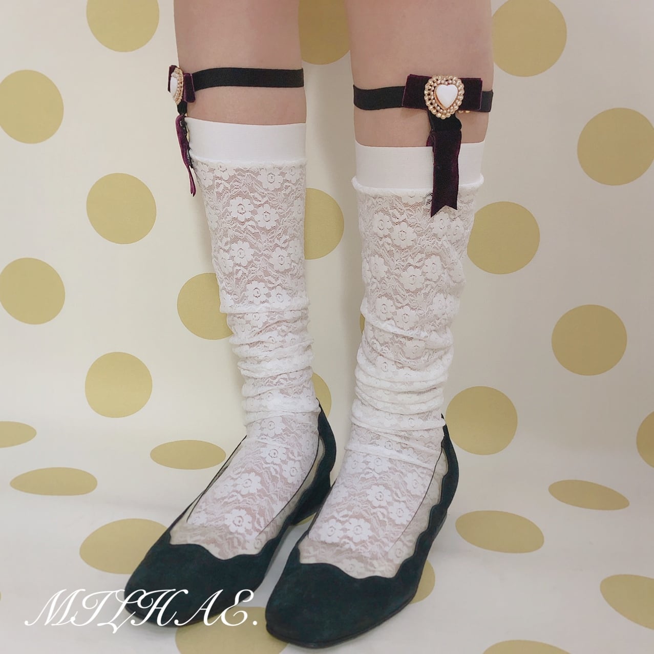 ソックス留めとしてはもちろん、ストッキングやタイツとのコーディネートに、きらりと輝くアクセントに。