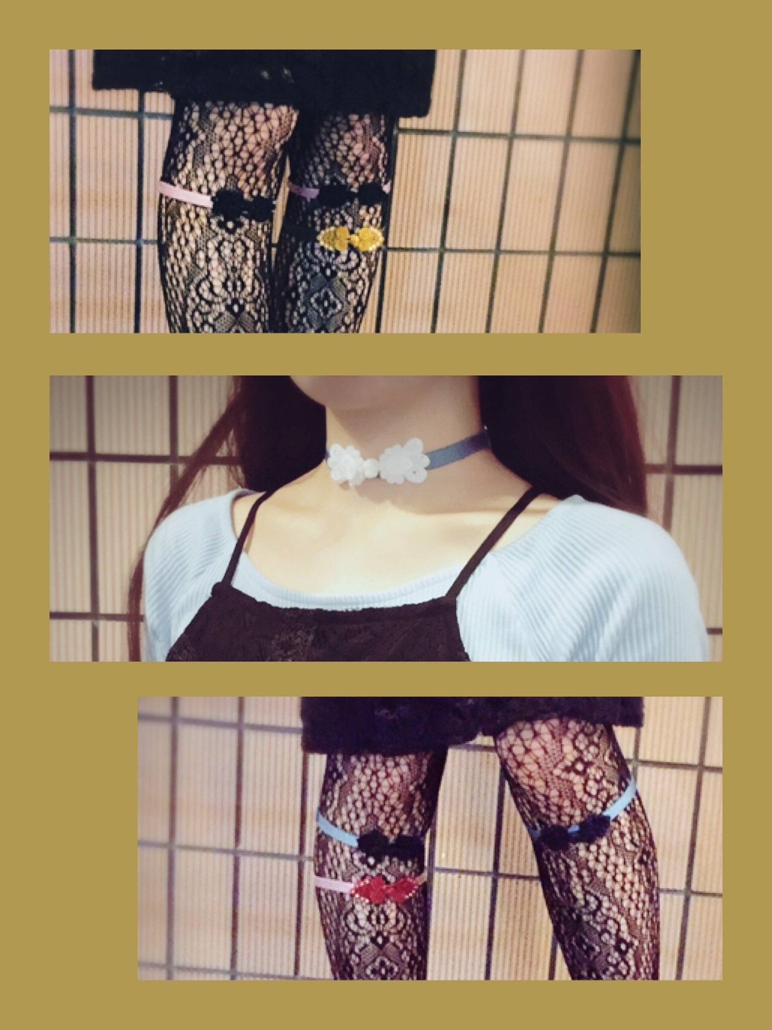 二重にして頂くと細い部分にも着けられますので、手首や足首にポイントで飾っても可愛いですよ。写真のようにチョーカーにしたり、重ね付けするのもおすすめです。
