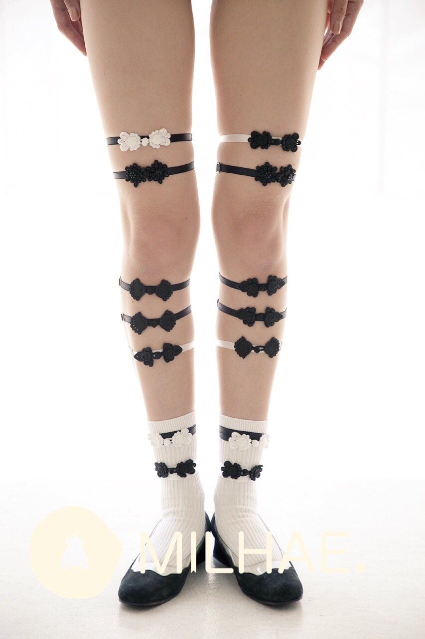 チャイナボタンが脚を飾ってくれる、ユニークなガーターバンド。
