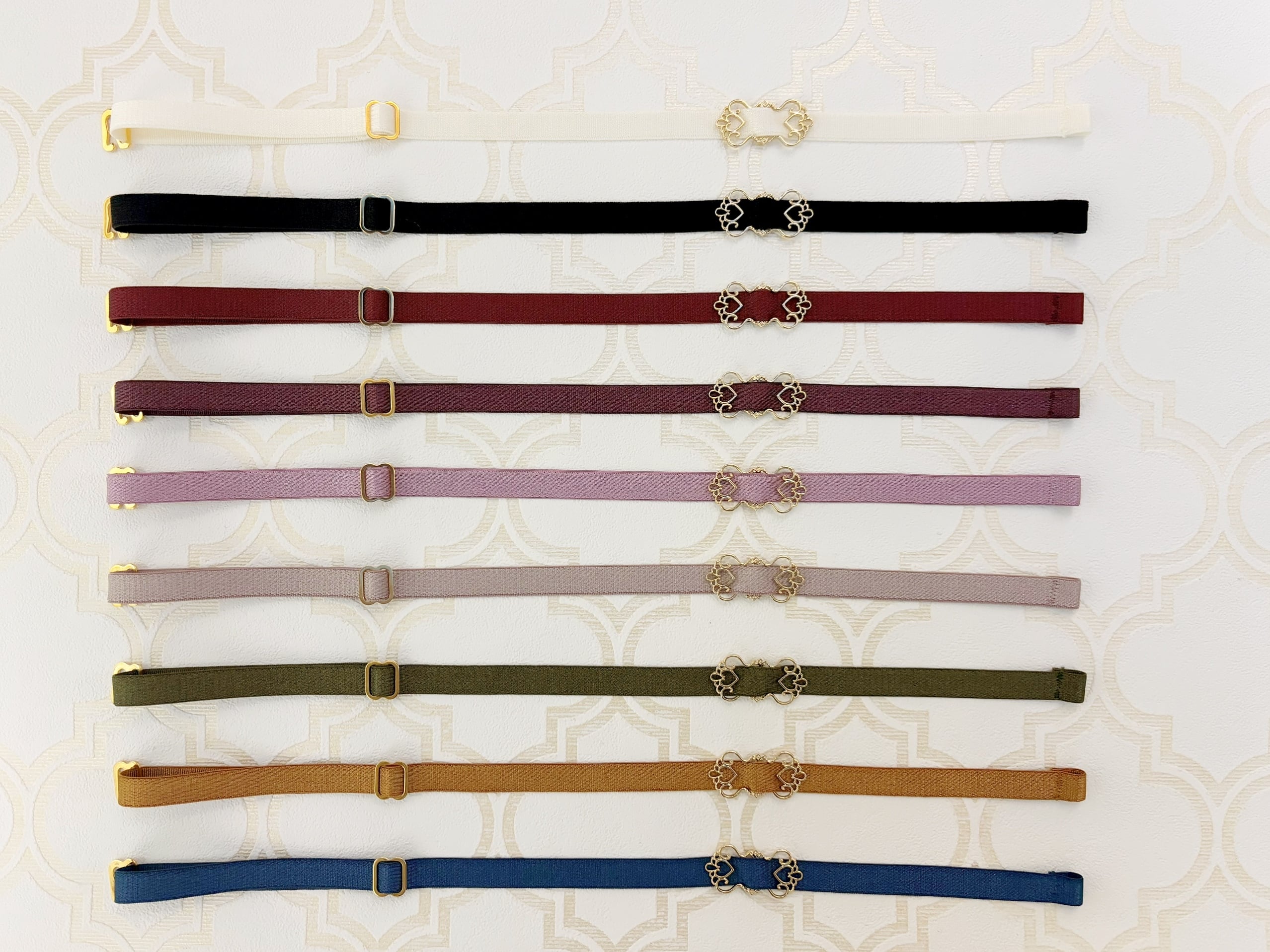 ランジェリーにはもちろん、お洋服に合わせても可愛い上品なカラーリングのストラップを揃えました。