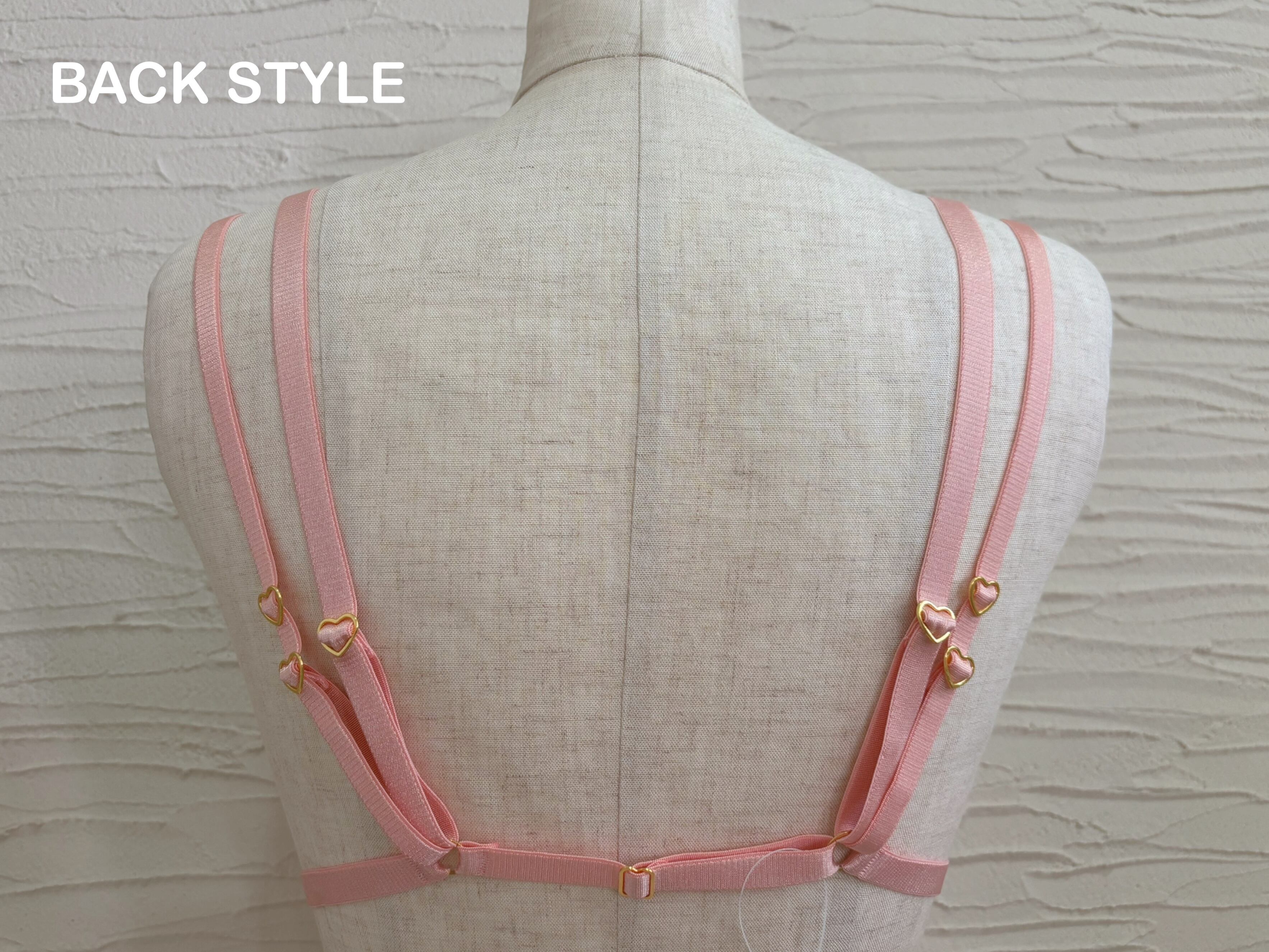 調節可能・伸縮性のあるストラップで、肩とアンダーバストのストラップが調節可能。ハートの位置も動かせますので、様々なコーディネートにお楽しみ頂けます。