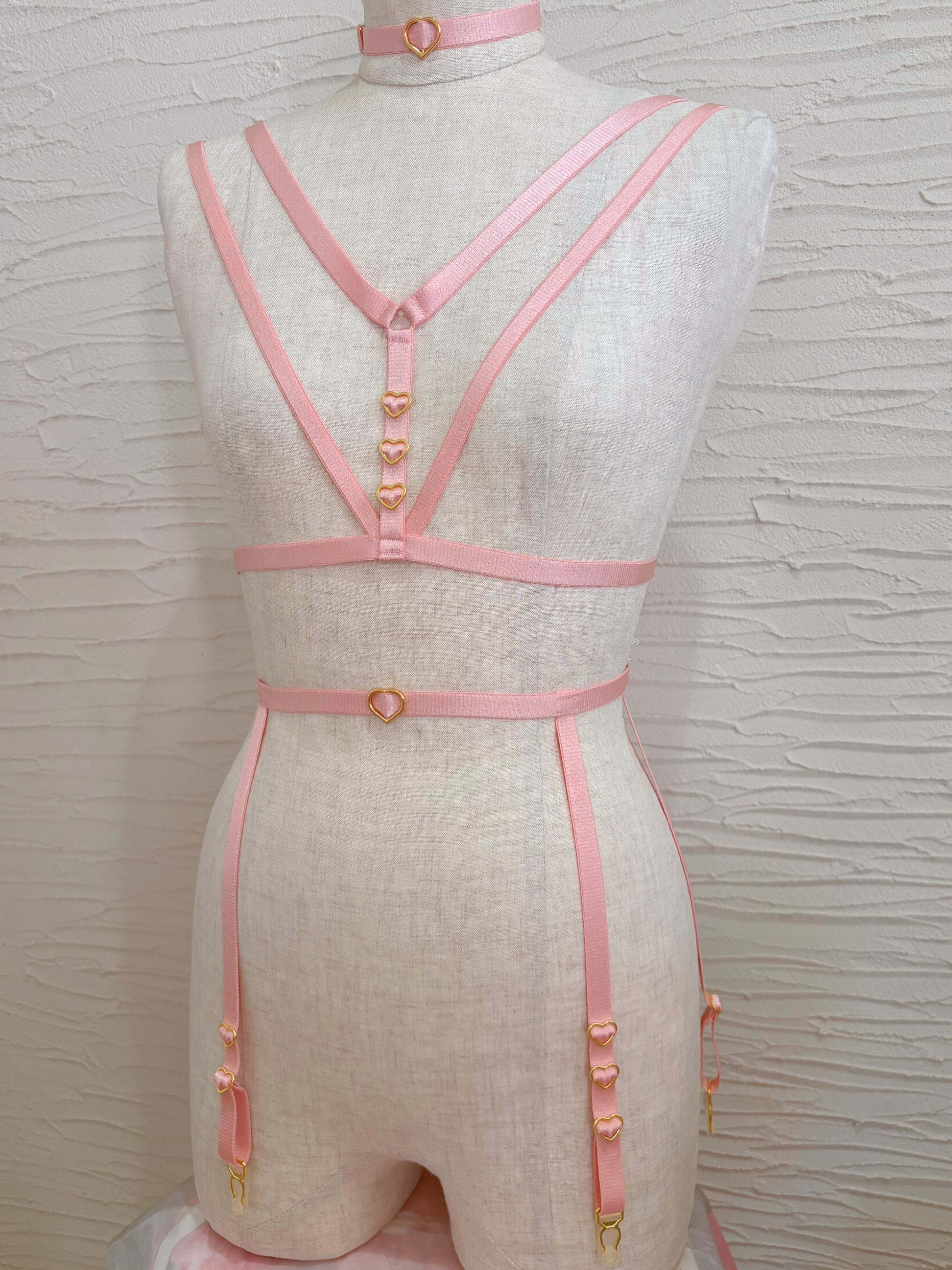 アシンメトリーに施されたハートが可愛らしく、フェティッシュなガーターベルト。