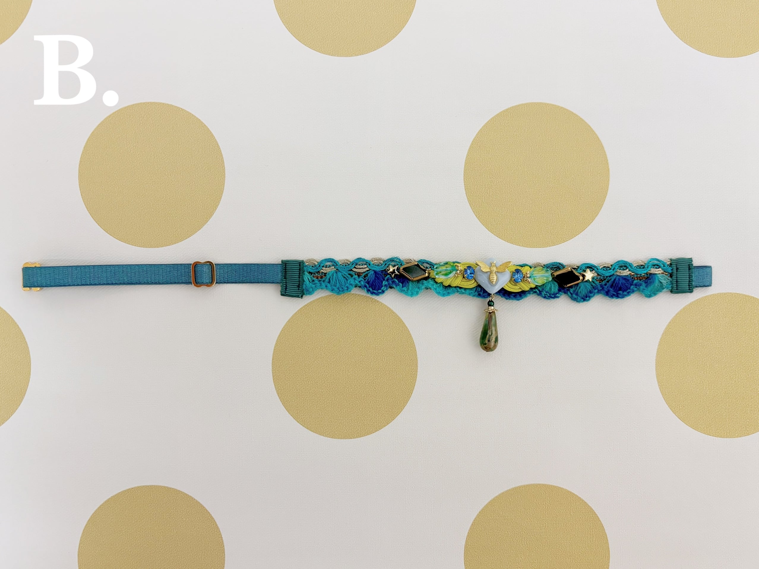 チョーカーにして着けたり、ストラップ部分を二重にして 足首や手首まわりを飾っても◎